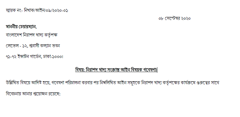 ব্যারিস্টার তাপস কান্তি বল নিরাপদ খাদ্য কর্তৃপক্ষে প্যানেল আইনজীবী হিসাবে, নিরাপদ খাদ্য অধিদপ্তরে অনুরোধক্রমে আইনি গবেষণা করে নিম্নোক্ত সুপারিশ প্রেরণ করেন।